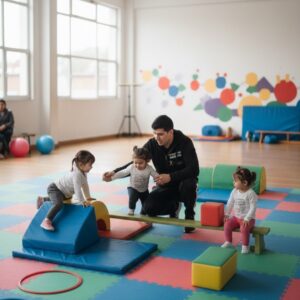 - Mejora del equilibrio, coordinación y control postural mediante juego dirigido.